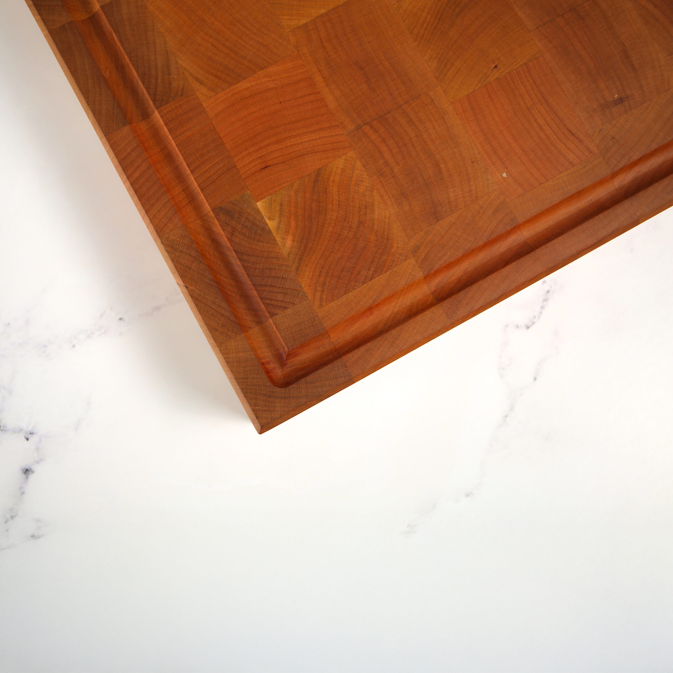 Care: Hand wash with mild soap, then rinse and dry thoroughly. Keep in a dry location at room temperature. Do not soak or put in the dishwasher. Given their absorbent nature, end grain boards requires bi- weekly oiling with a food-grade mineral oil and beeswax blend, applied with a paper towel, to maintain moisture balance, prevent cracks, and uphold the board’s longevity.