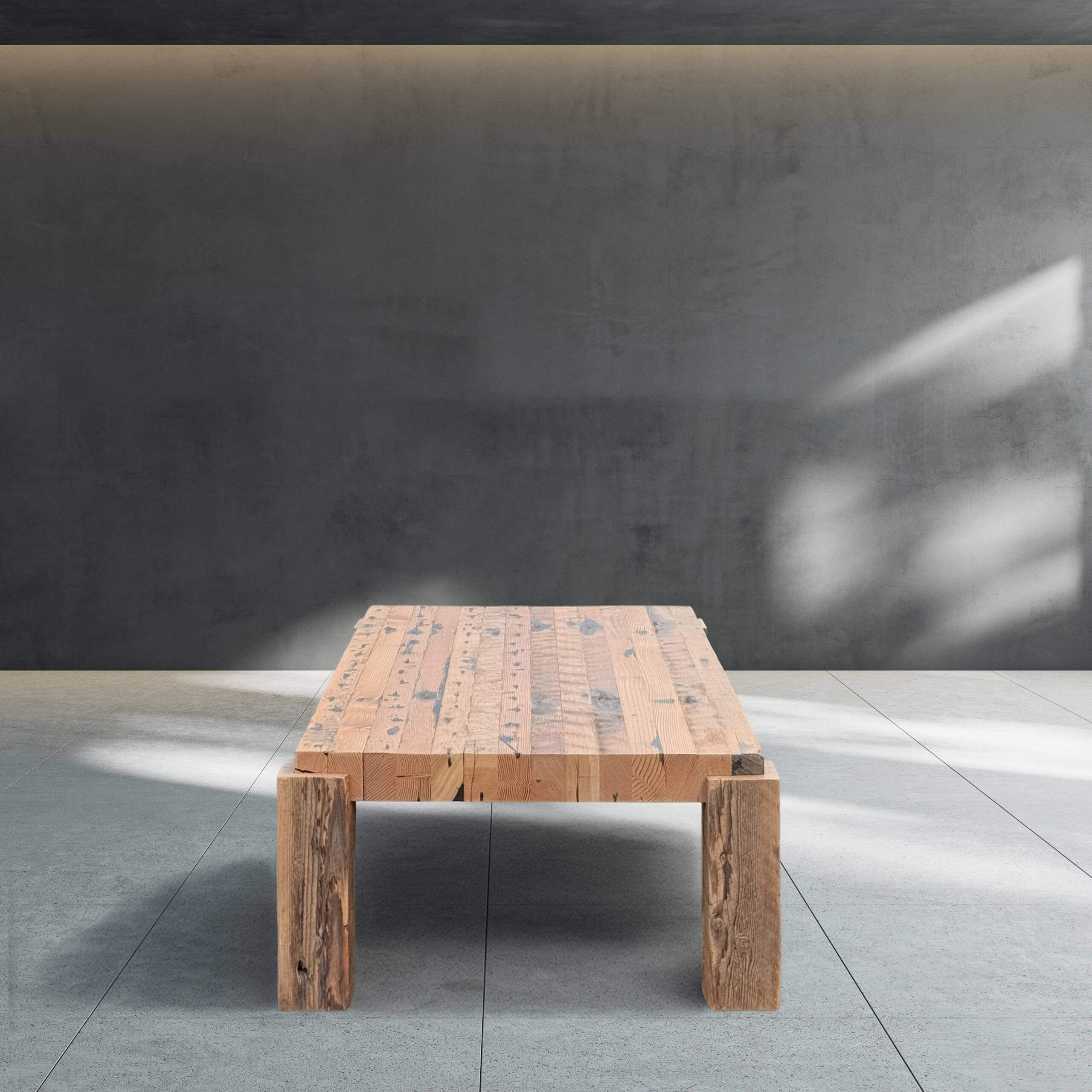 Handcrafted in Los Angeles from rare, old-growth reclaimed Douglas fir, this coffee table embodies the quiet luxury of natural materials reimagined with modern refinement. Each plank carries the patina of history—its grain, knots, and subtle imperfections preserved as a testament to authenticity and character.